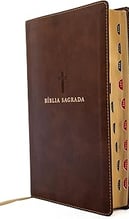 Bíblia NVI, Couro Soft, Marrom, Letras de Jesus em Vermelho